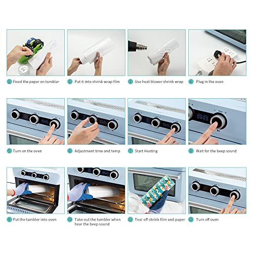 - Easy to Use:First,set suitable print parameters.Second,wrap the printed paper on the tumblers,add shrink wrap film.Third,put it into the oven start printing.Then you can get the printed tumblers,especially suitable for the full wrap print designs and dark color designs.